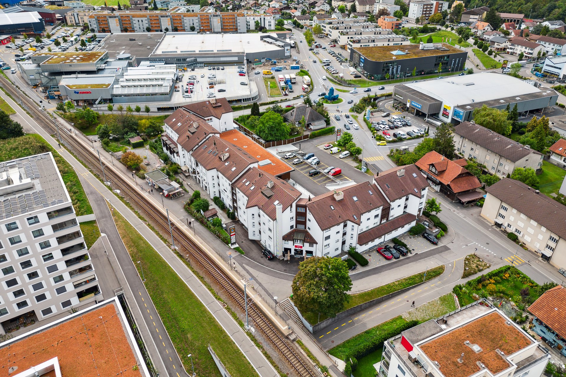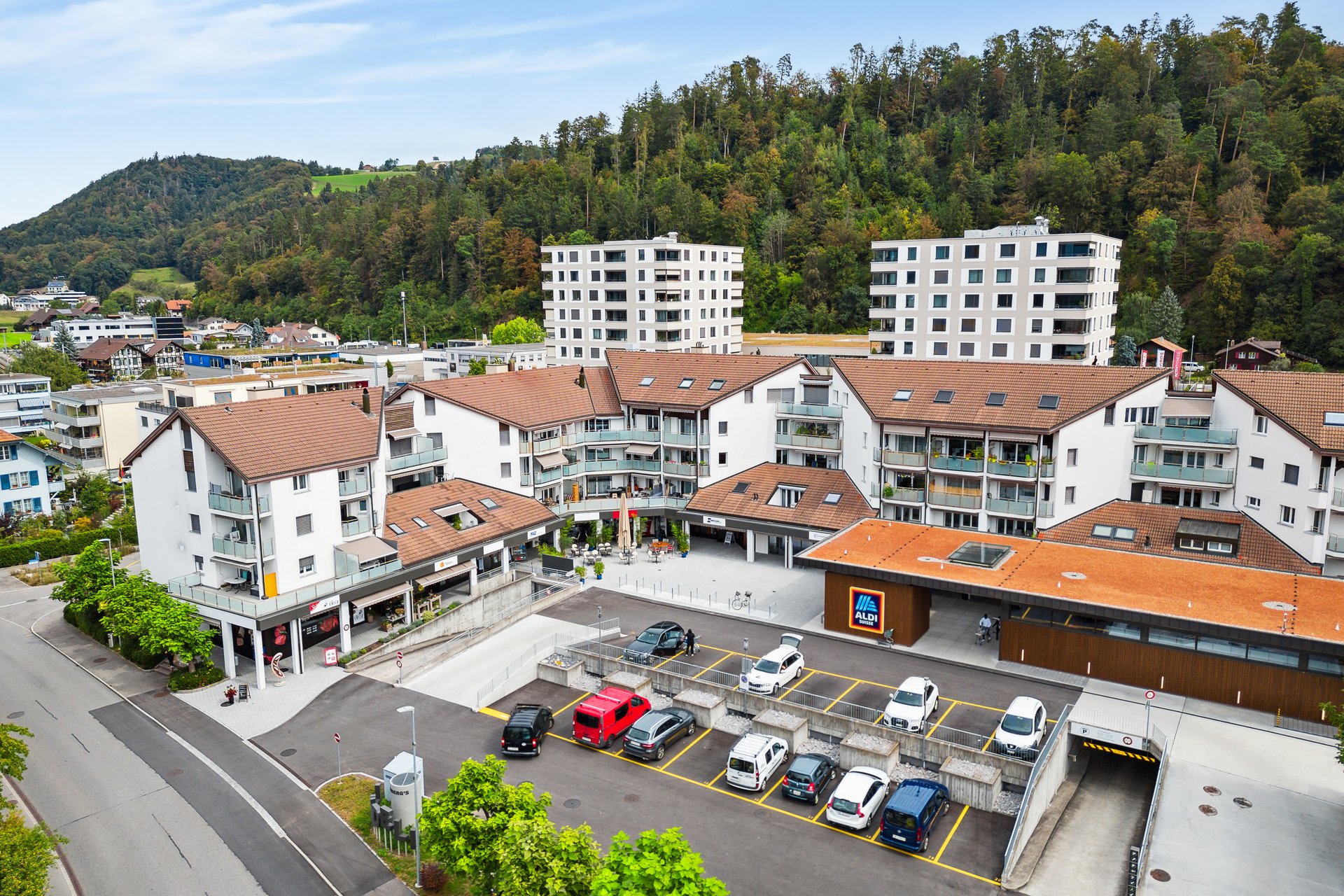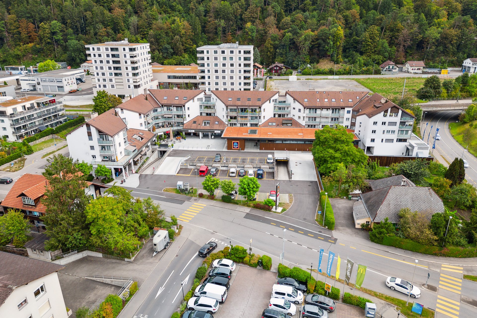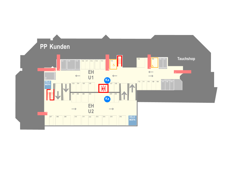 Die öffentlichen Parkplätze befinden sich draussen sowie im 1. und 2. Untergeschoss in der Einstellhalle.